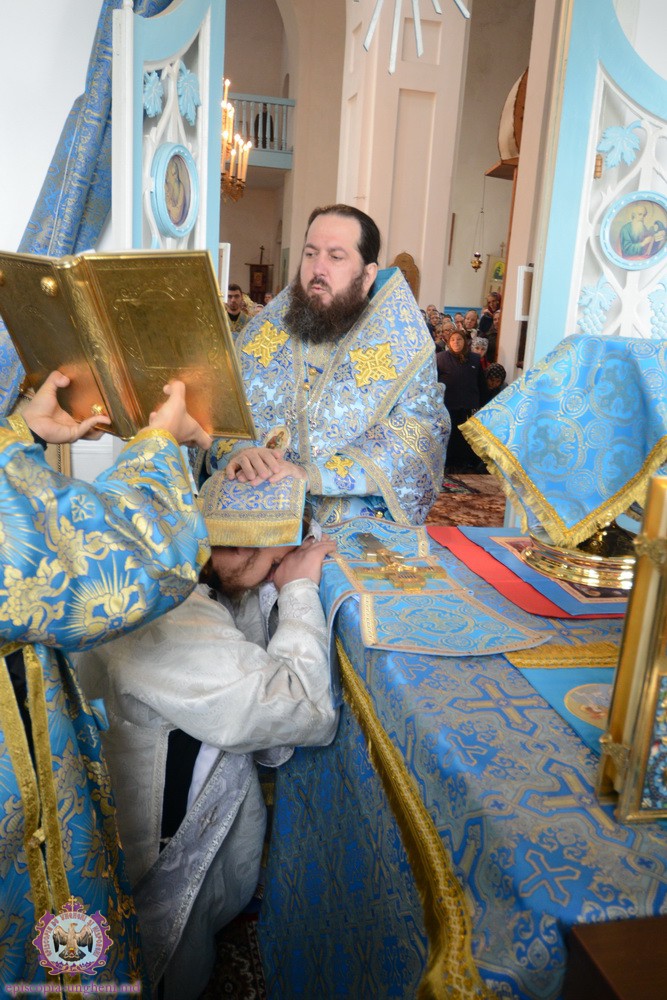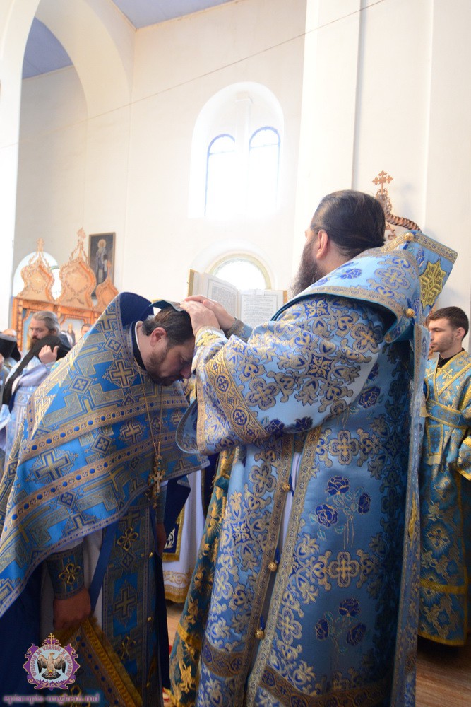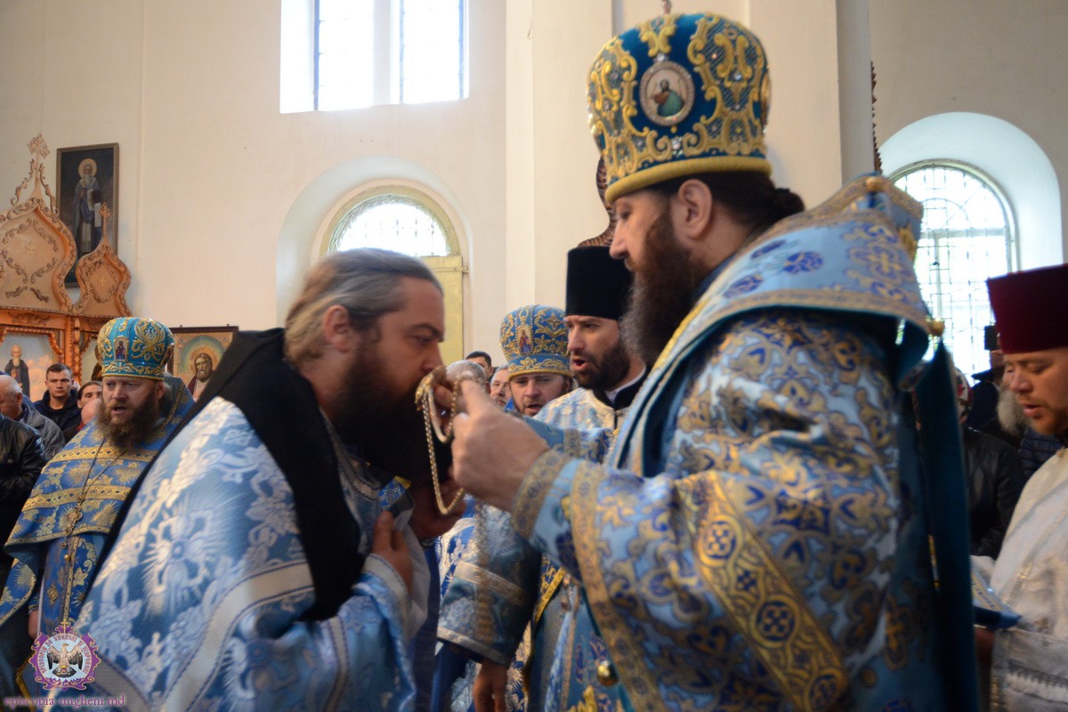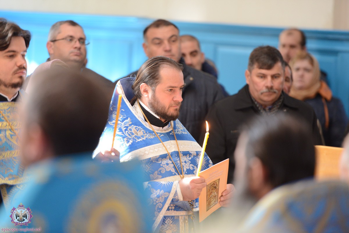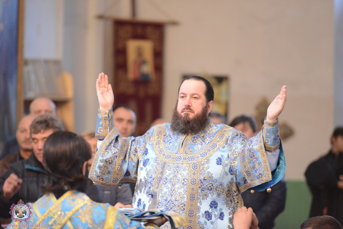 După cîntarea Heruvimică, Protodiaconul Alexandru CHIORESCU a fost hirotonit în treapta de Preot pe seama parohiei “Icoana Maicii Domnului Bucuria tuturor scîrbiţilor” din or. Nisporeni.