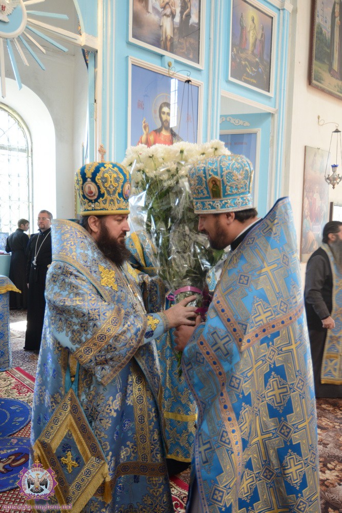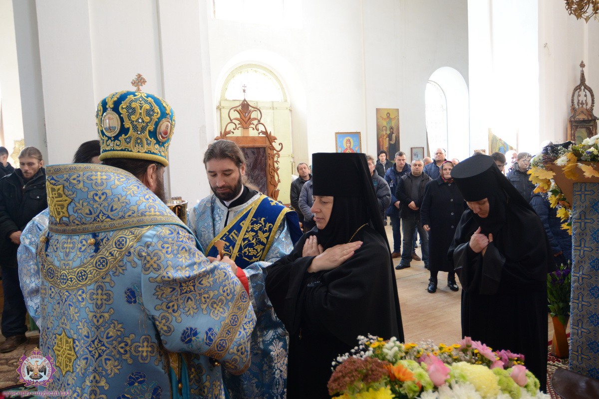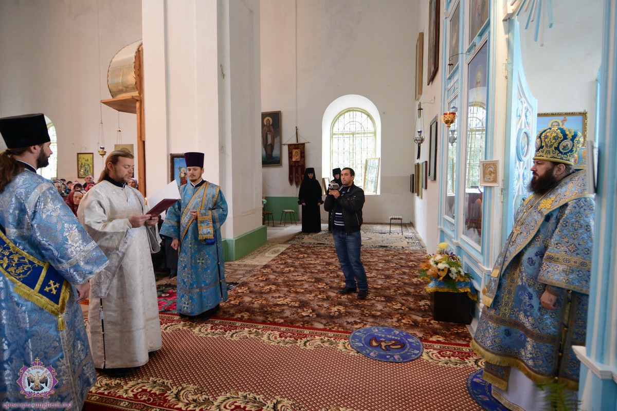 Liturghia praznicală a fost săvârșită de Preasfințitul PETRU, Episcop de Ungheni și Nisporeni, în Catedrala Episcopală „Sfânta Treime” din complexul mănăstirii. Alături de Chiriarh au liturghisit Președintele Departamentului Eparhial, Mănăstiri și Viață Monahală, Arhimandritul KIRIL (Braguța), Starețul Mănăstirii Hârbovăț, Arhimandritul SPIRIDON (Marin), și un sobor impunător de preoți și diaconi.