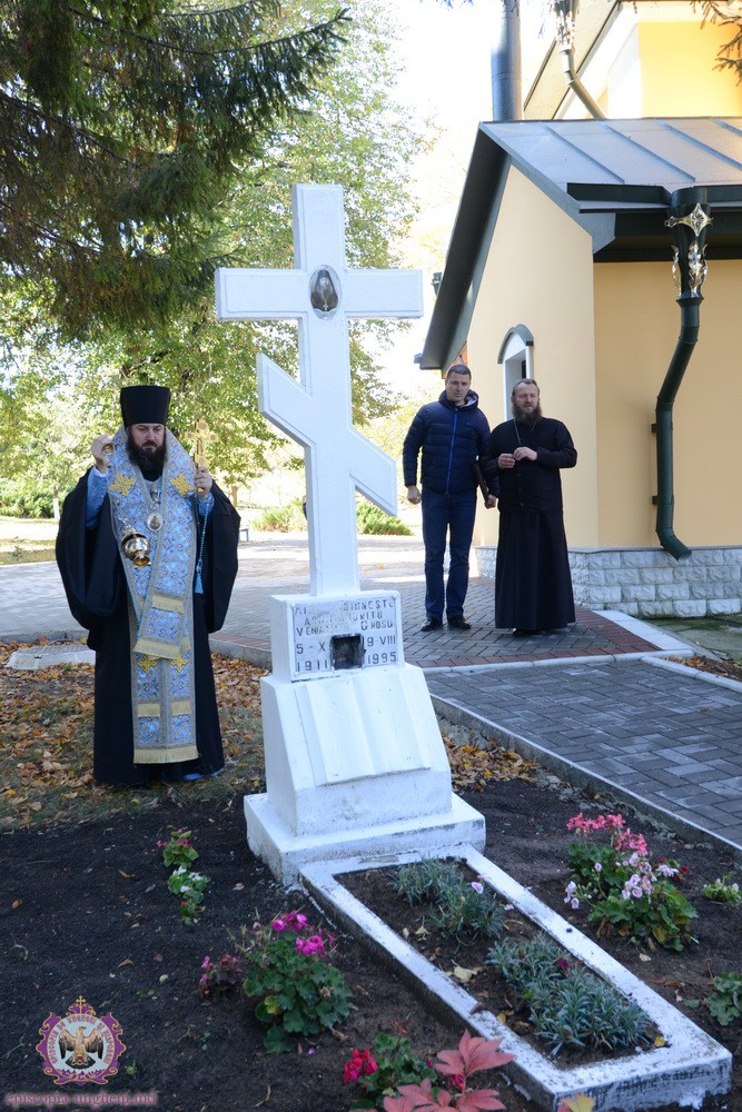 Preasfinția Sa, după finisarea slujbei praznicale a săvîrșit Litia pentru cei adormiți la mormîntul vrednicului de pomenire Arhimandritul Veniamin (Grosu).