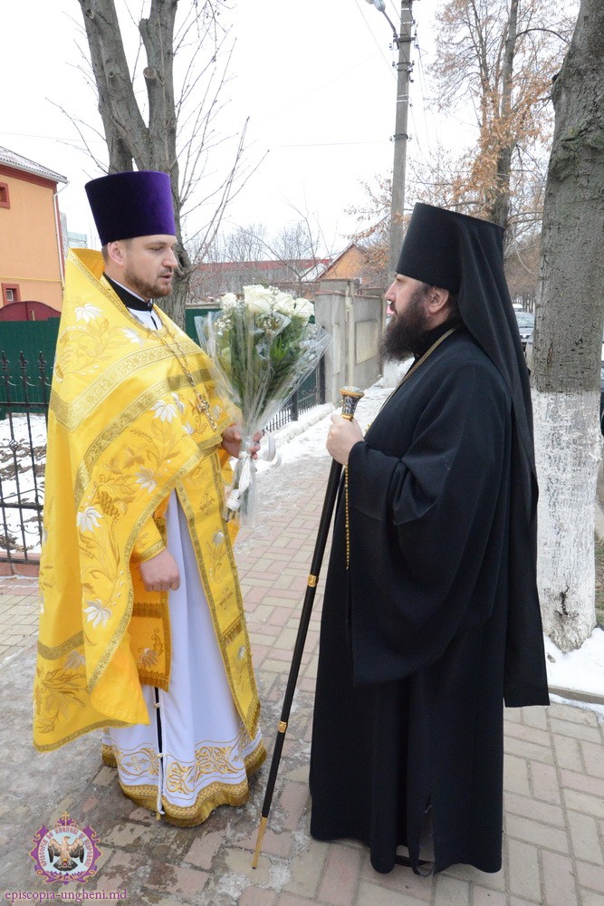 În dimineața zilei, Preasfinția Sa a fost întîmpinat de către parohul bisericii şi creştinii veniţi la rugăciune. Alături de Ierarh la Slujba Praznicală au luat parte Secretarul Eparhial, Protoiereul Vadim COROSTINSCHI, Preşedintele Departamentului Eparhial Mănăstiri şi Viaţă Monahală, Arhimandritul KIRIL (Braguţa), Protopopul raionului Ungheni, Protoiereul Bartolomeu TURTUREANU şi Secretarul Episcopului, Arhidiaconul DOMETIAN (Redco) împreună cu preoții slujitori și creștinii veniți la slujbă.