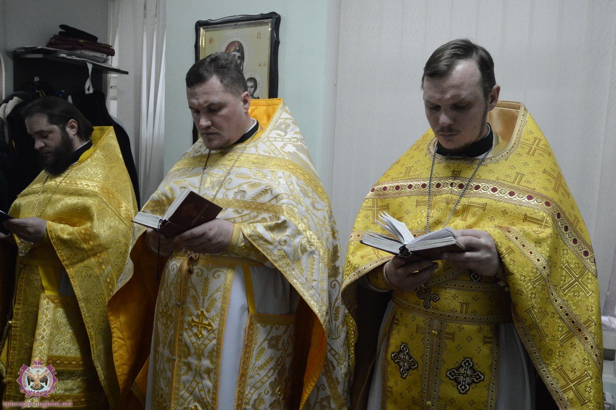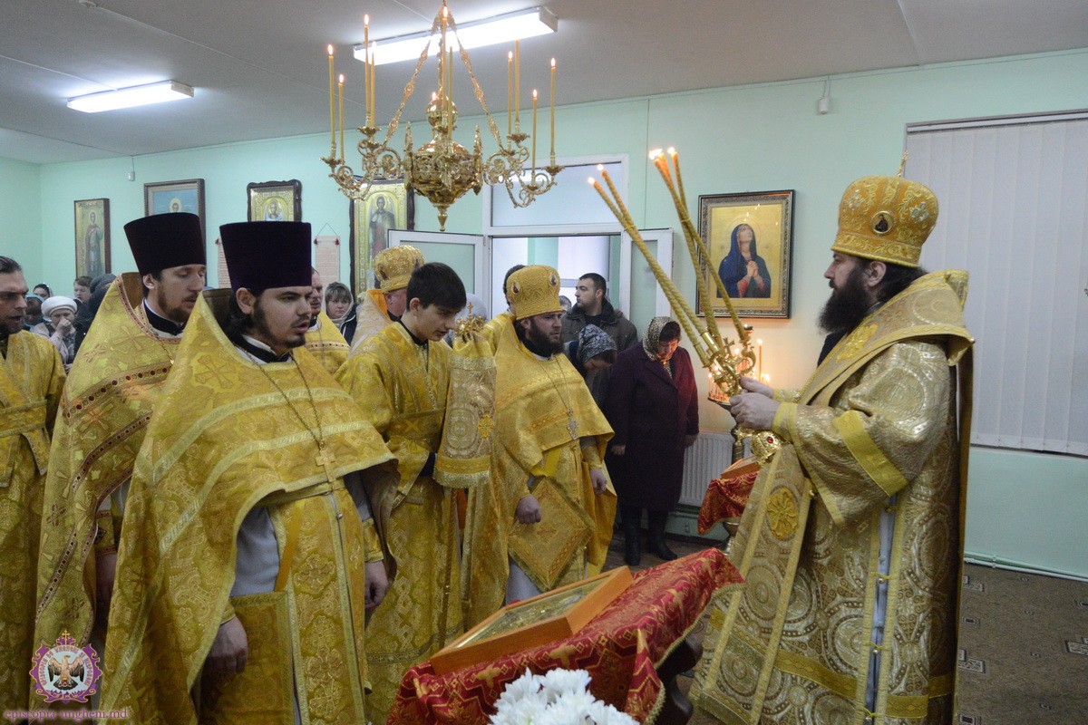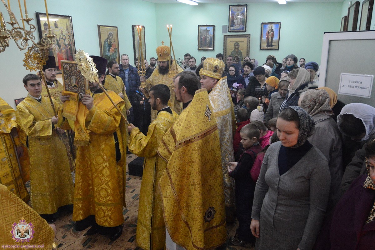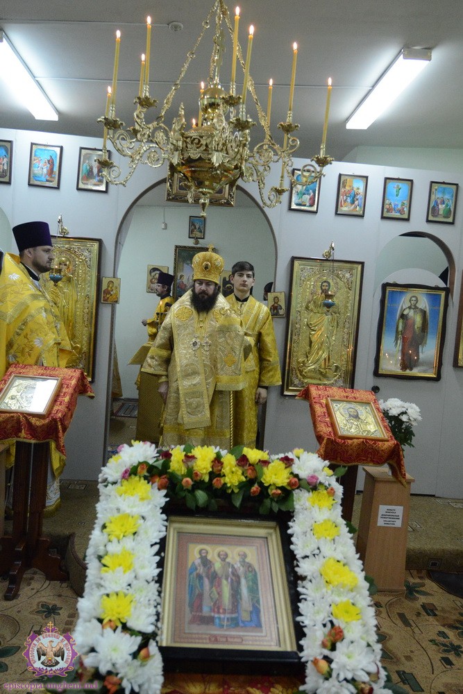 Joi, 12 februarie 2015, cînd Biserica Ortodoxă face pomenire sfinților Trei Ierarhi și luminători ai lumii Vasile cel Mare, Grigore Teologul și Ioan Gură de Aur, Președintele Departamentului Eparhial, Mănăstiri și Viață Monahală, Arhimandritul KIRIL (Braguța) a luat parte alături de Chiriarhul locului la sărbătorirea hramului Paraclisului Episcopal.