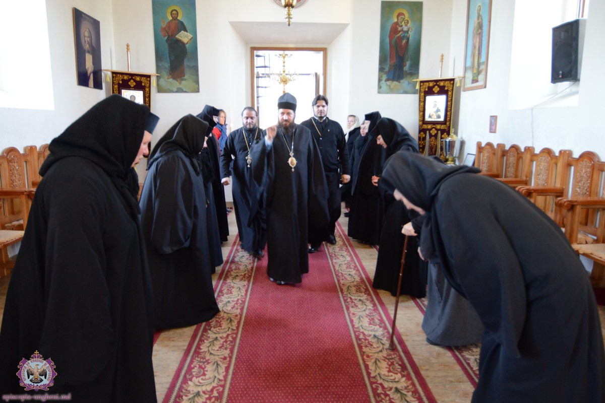 Prima mănăstire vizitată de Chiriarh a fost mănăstirea „Înălțarea Domnului” Hîrjauca, aici starețul mănăstirii, Arhimandritul KIRIL (Braguța) care este și Președintele Sectorului Eparhial, Mănăstiri și Viață Monahală, a prezentat Stăpînului un raport de activitate a mănăstirii mai ales a lucrărilor de renovare a mănăstirii.