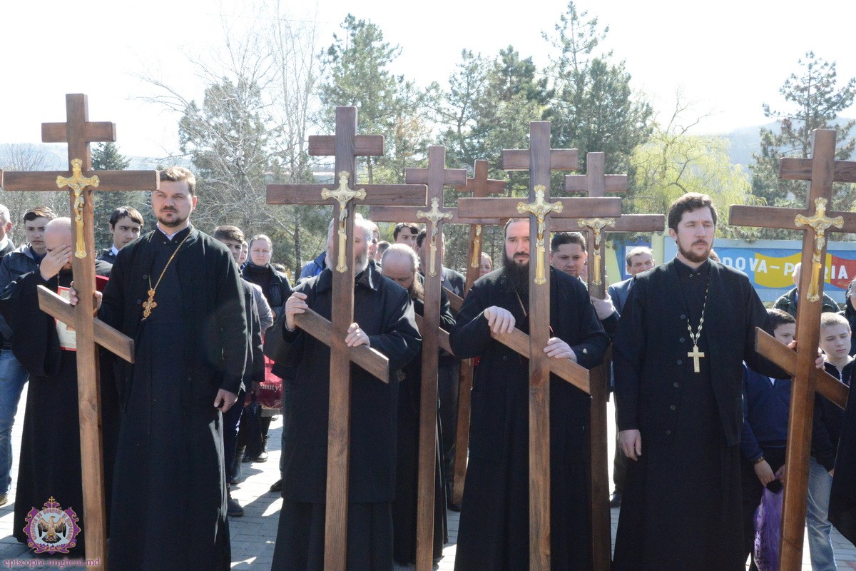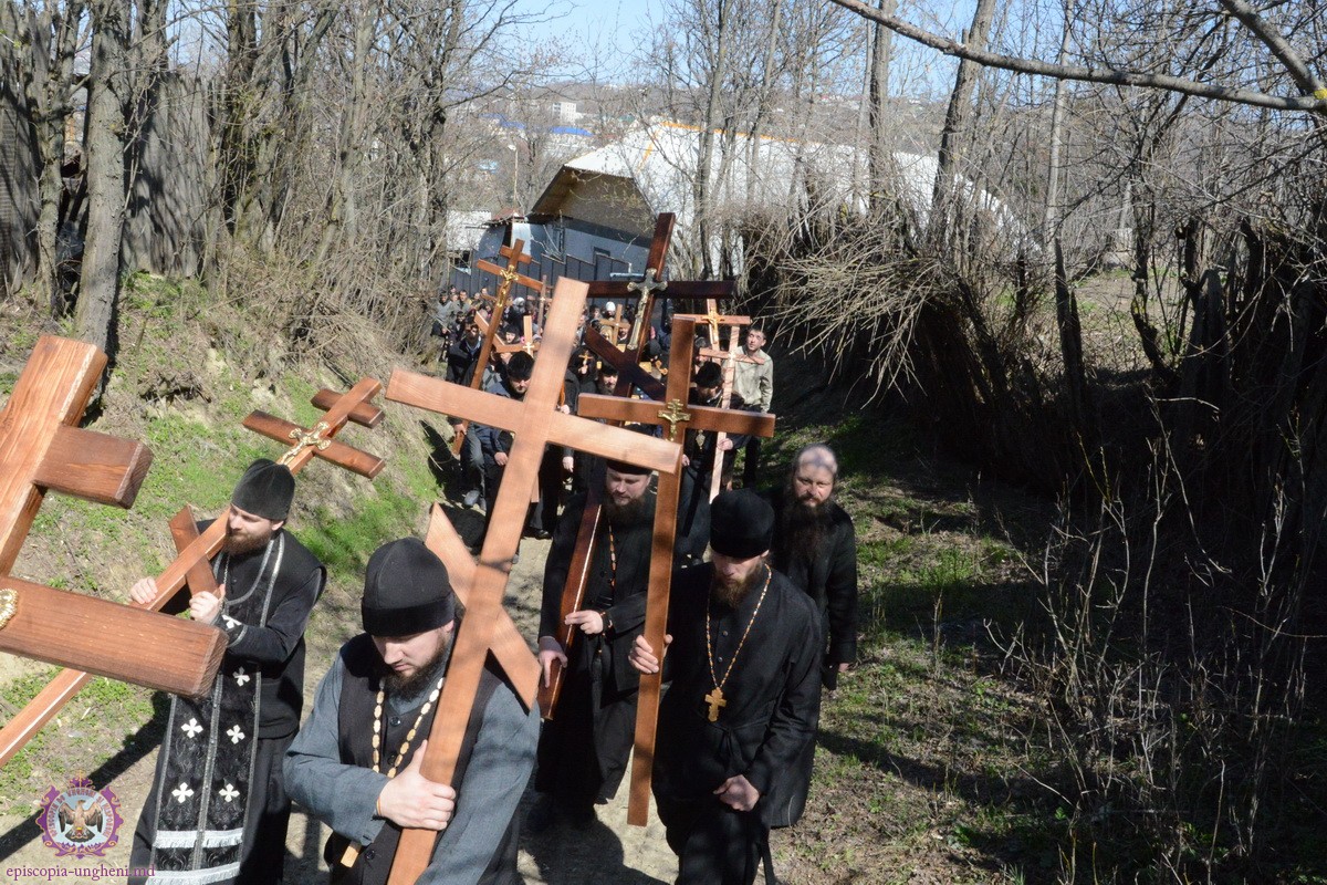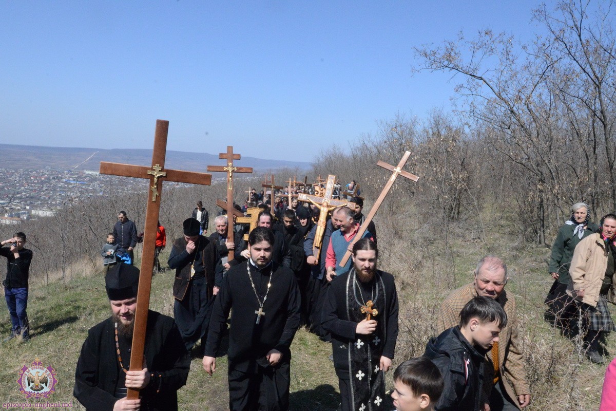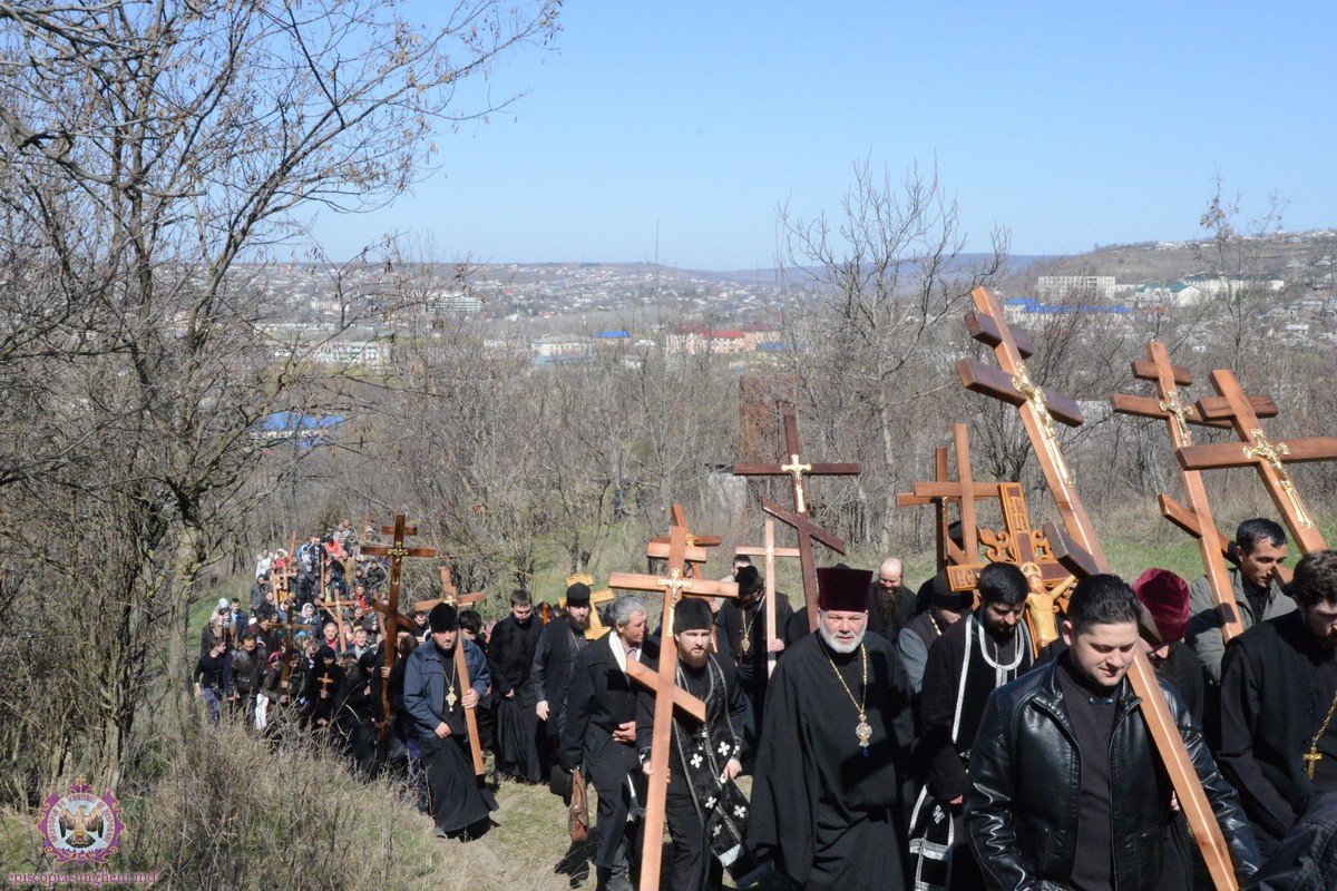 Preşedintele Departamentului Eparhial, Mănăstiri şi Viaţă Monahală, Arhimandritul KIRIL (Braguţa), a urcat cu crucea în spate alături de Chiriarh, preoţii prezenţi şi mulţimea de credincioşi.