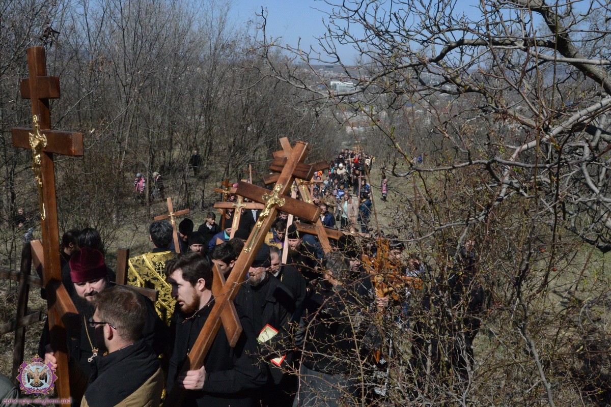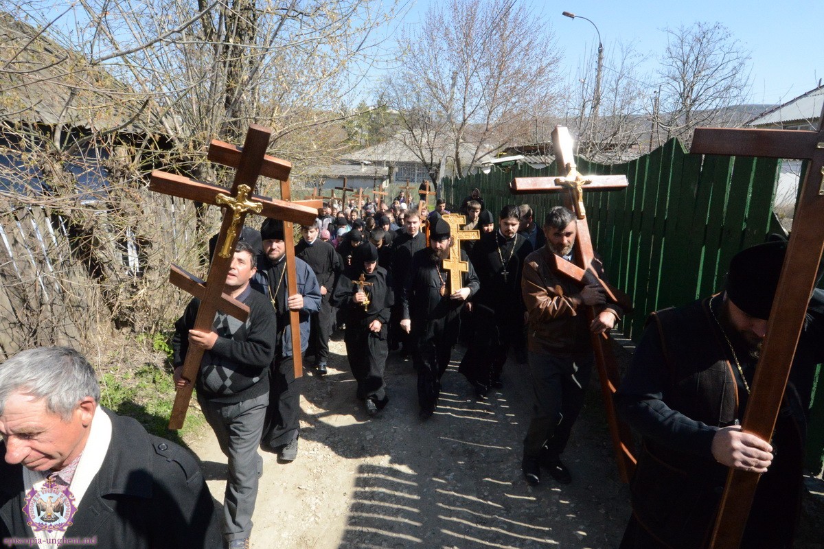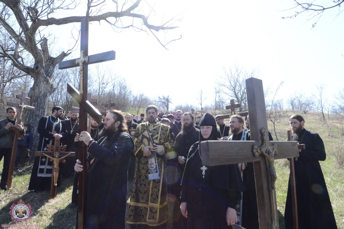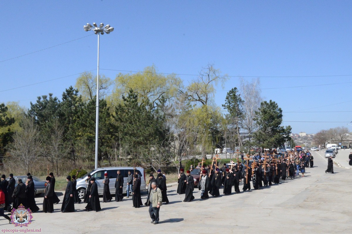 Preşedintele Departamentului Eparhial, Mănăstiri şi Viaţă Monahală, Arhimandritul KIRIL (Braguţa), a urcat cu crucea în spate alături de Chiriarh, preoţii prezenţi şi mulţimea de credincioşi.