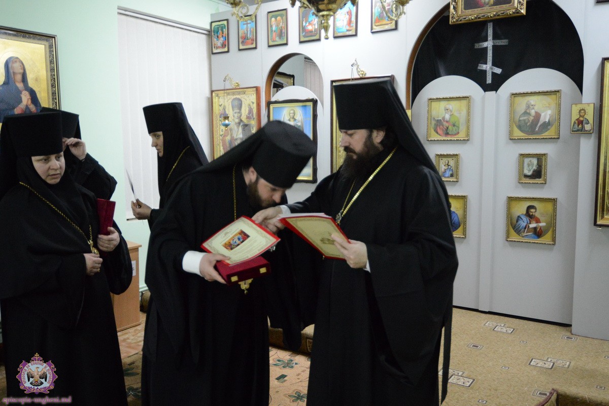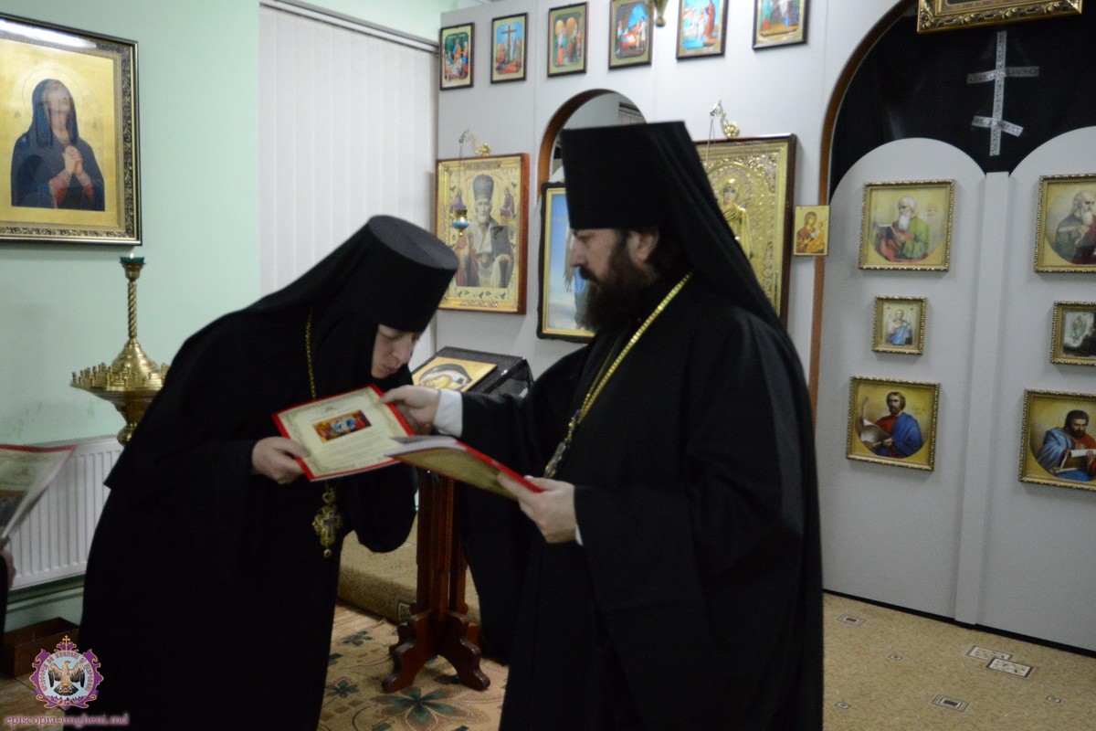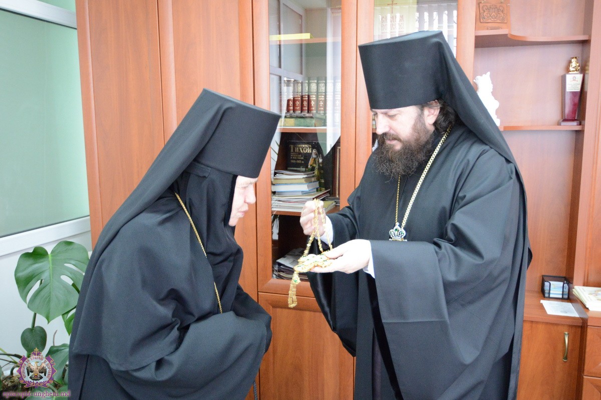 La final Preasfinția Sa, a felicitat pe toți cu marea sărbătoare a Învierii Domnului dăruind tuturor stareților și starețelor cîte o cruce cu pietre scumpe totodată împărțindule Pastoralele pentru sărbătoarea Învierii.