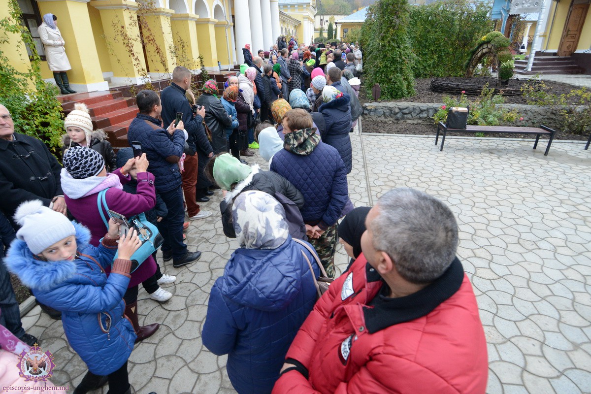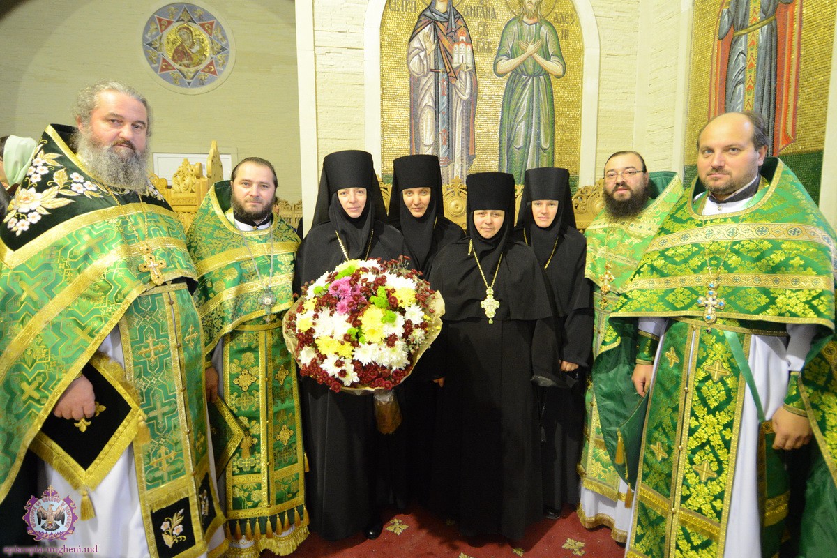 În dimineața zilei Preasfinţia Sa, a fost întîmpinat de soborul impresionant de preoţi şi diaconi şi nu în ultimul rînd, de Stareţa acestui aşezămînt monastic şi omagiata zilei acesteia, Egumena PARASCHEVA (Cazacu), împreună cu obştea monahală şi mulţimile de credincioşi veniţi la Hramul mănăstirii.